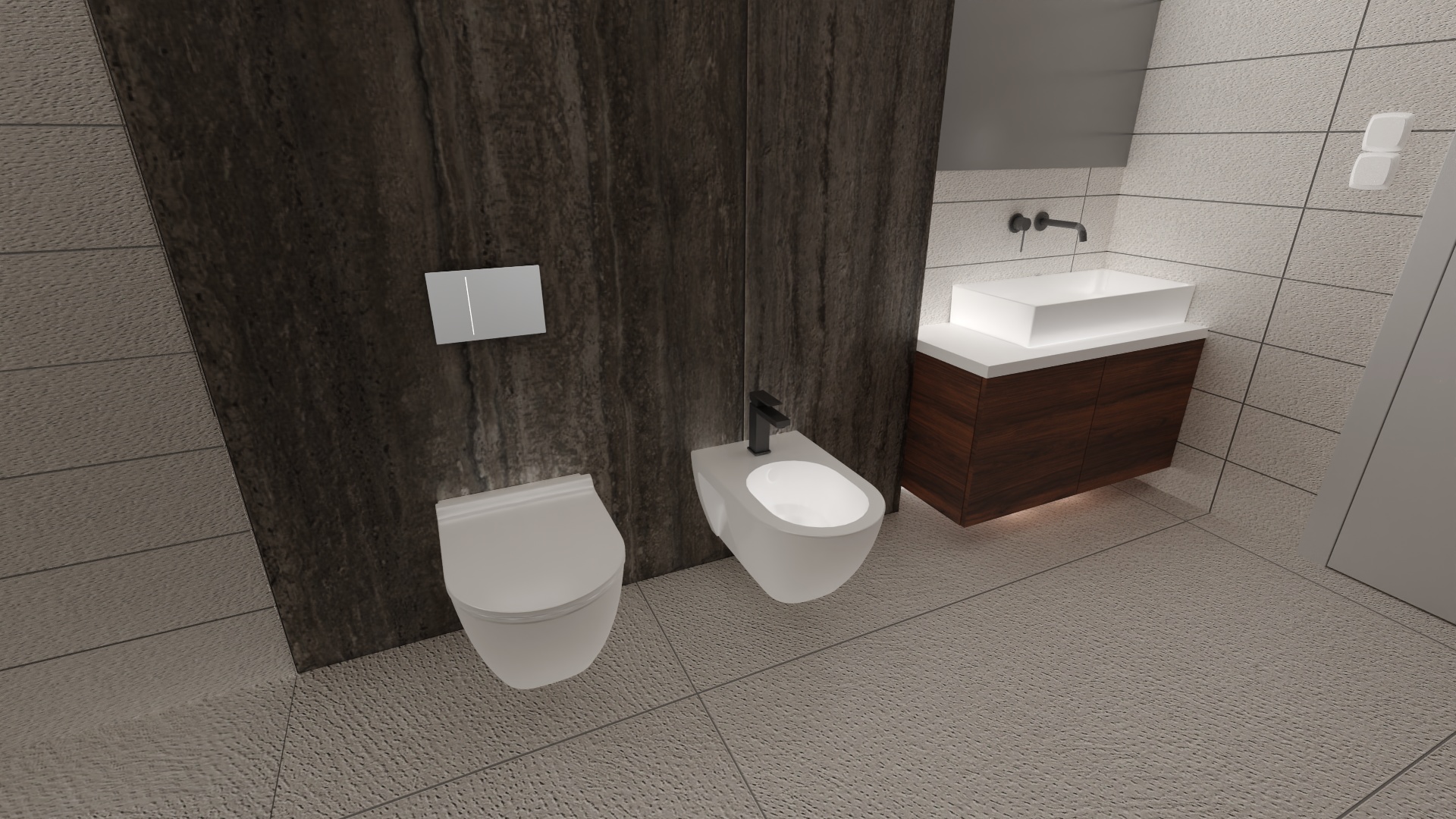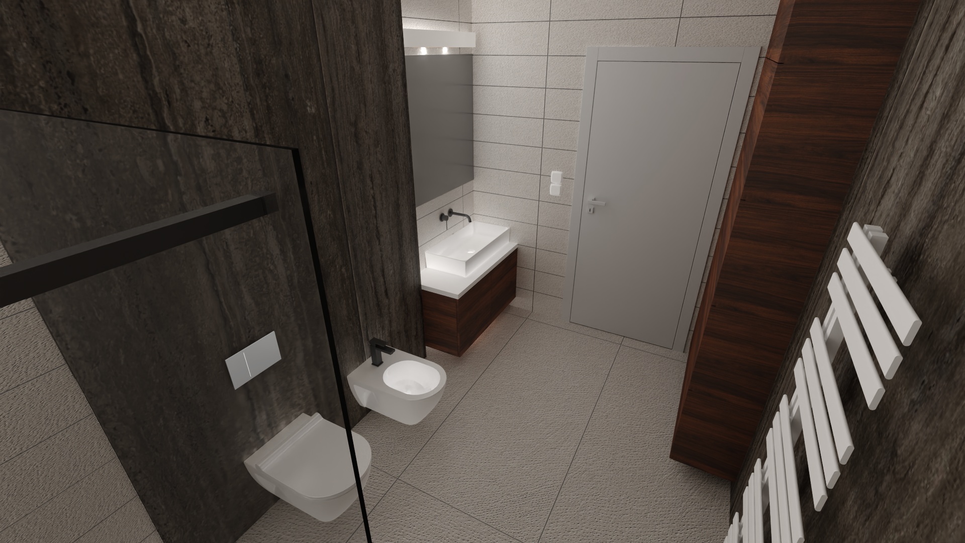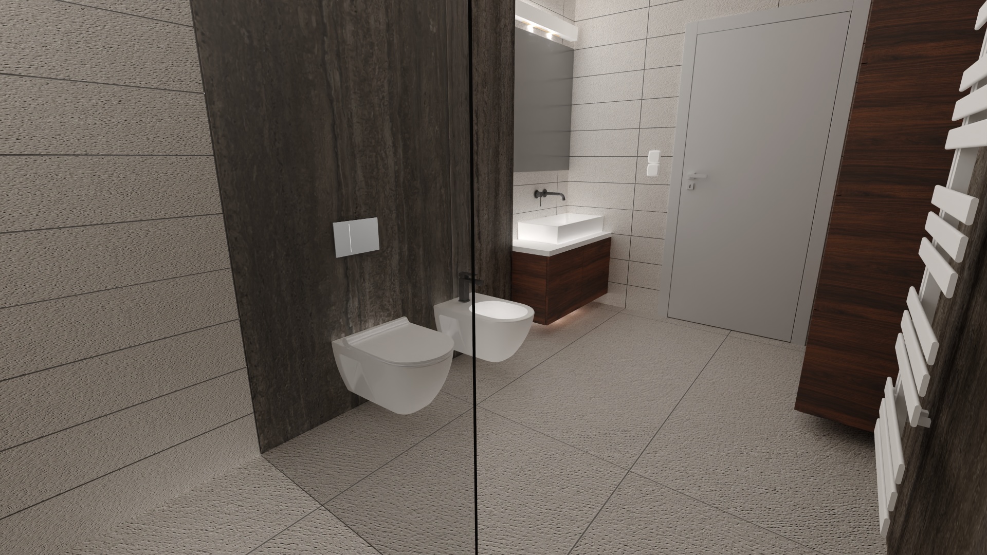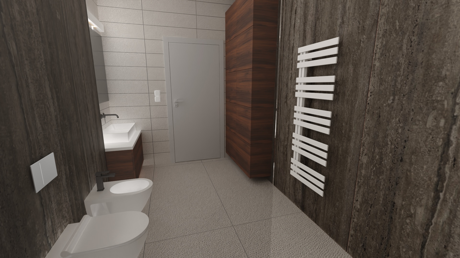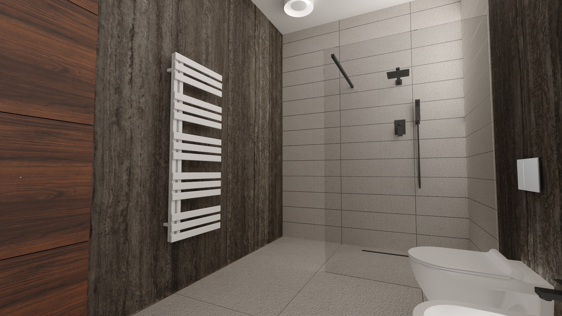 Można porównać płytki wykorzystane z projektu z orginałami Kronosa. Duża przestrzeń łazienki pozwala na spore udogodnienia w wyborze mebli. Bardzo minimalistyczna przestrzeń.